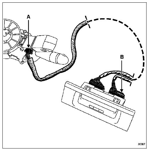 * Si le véhicule n'est pas équipé d'afficheur décalé au tableau de bord, le satellite de commande au volant est raccordé à l'autoradio.