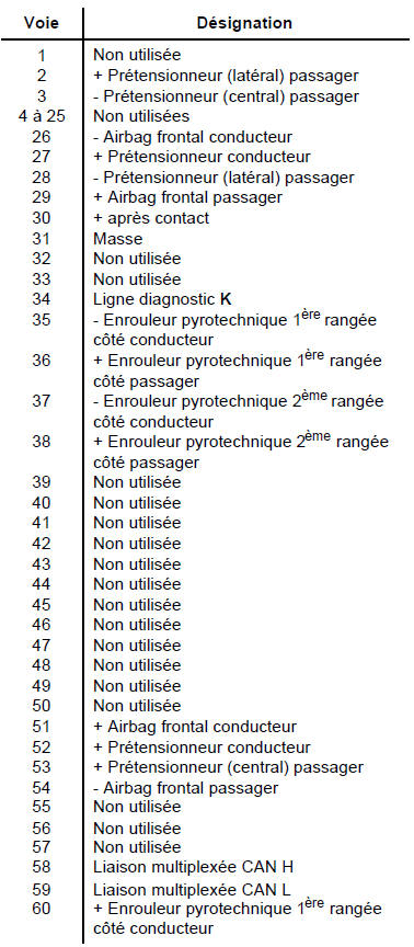 Les boîtiers neufs identifiables par l'intitulé "acu3" par les outils de diagnostic (sauf xr25) sont livrés enrouleurs pyrotechniques configurés. Si cette configuration n'est pas réalisée, le témoin airbag reste allumé.