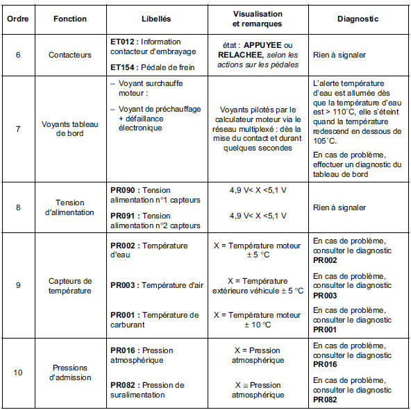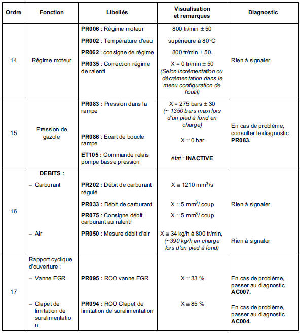 Conditions d'exécution : moteur arrêté, sous contact. "Et003" inactif.