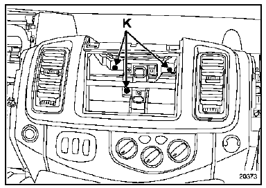 Déclipser le cache supérieur central. Déposer l'autoradio, outil (ms.1373).