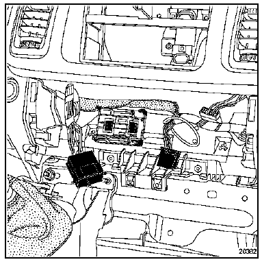 Débrancher l'unité centrale habitacle (h) (elle se situe à proximité de la colonne de direction).