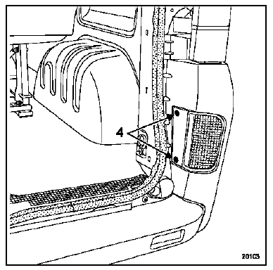 Depose des feux (partie inférieure) déposer les vis de fixation (4). Débrancher le connecteur. Dégager le bloc de feux.