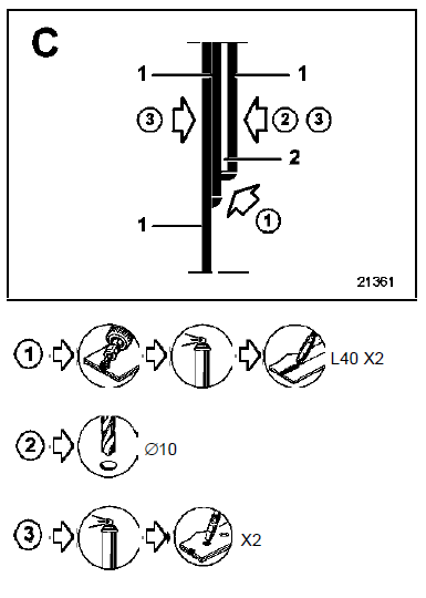 Nota : dans la méthode décrite ci-après vous ne trouverez que les descriptions et liaisons spécifiques au remplacement partiel au niveau de l'emboîtement du longeron avec l'habitacle.