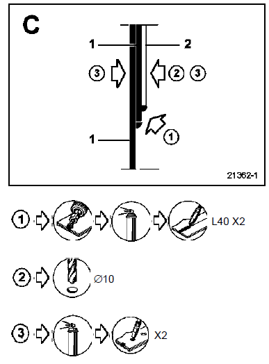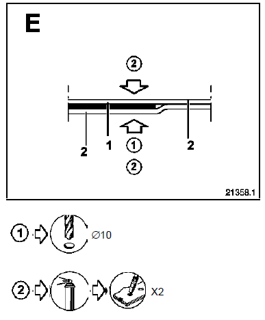 Nota : le remplacement complet du longeron nécessite le dégrafage de la partie arrière de longeron avant.