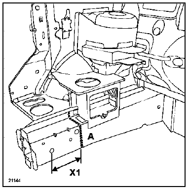 Nota : Il est possible d'effectuer la coupe sous le renfort de support moteur, mais dans ce cas il sera nécessaire de le dégrafer pour réaliser aisément l'opération. Pour cela il est conseillé de commander en supplément un renfort neuf.