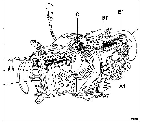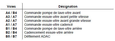 Nota : il est possible de contrôler les commandes de feux à l'ohmmètre. La commande de l'aver tisseur sonore passe par le connecteur (c) via le raccord tournant.