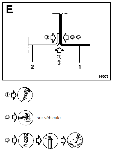 Aux endroits où ceux-ci ne sont pas réalisables, effectuer des cordons de soudure côté extérieur au véhicule.