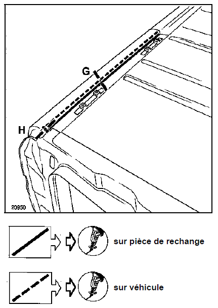 Attention : une colle structurale du type mct 514, référence : 77 11 172 674 doit être utilisée pour l'encollage des zones c.