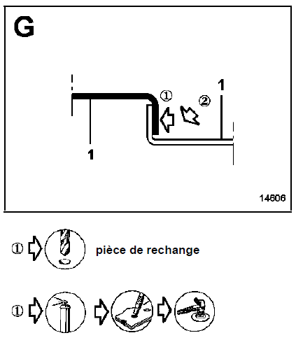Nota : le nombre de points de bouchonnage n'est pas précisé, il sera nécessaire de respecter un écart d'environ 60 mm entre les points de soudure, puis de réaliser après soudure un cordon de mastic dans la carre pour assurer l'étanchéité.