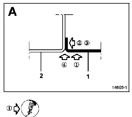 Nota : le nombre de points de bouchonnage n'est pas précisé. Il sera nécessaire de respecter un écart d'environ 60 mm entre les points de soudure, puis de réaliser après soudure un cordon de mastic dans la carre pour assurer l'étanchéité.