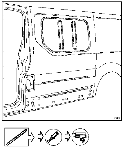 Pour les parties collées, il sera nécessaire d'utiliser un mastic de calage type m.J.Pro (référence : 77 11 172 676).