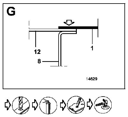 Pour l'accostage b, f, i et g, le nombre de points de bouchonnage n'est pas précisé. Il sera nécessaire de respecter un écar t d'environ 70 mm entre chaque point de soudure.