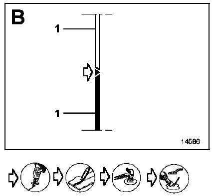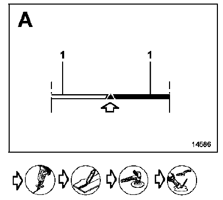 Important : les positions de coupes sont données à titre indicatif, elles peuvent être décalées suivant les déformations dues au choc, sauf pour la coupe c qui doit être respectée précisément.