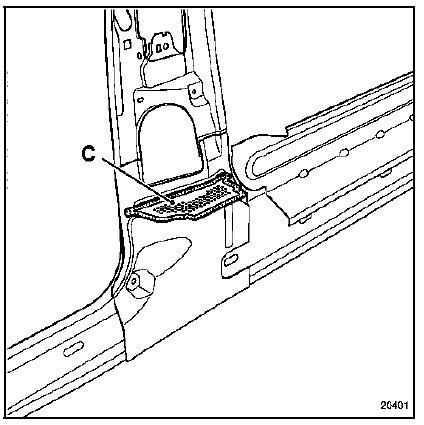 Le remplacement de cette pièce ne peut être effectué qu'après dépose du panneau latéral arrière partie avant.