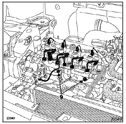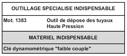 Serrer les tuyaux haute pression au couple de 2,5 dan.M en serrant en premier les écrous côté pompe et injecteurs puis côté rampe.