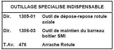 Dans cette position, débloquer la rotule axiale à l'aide de l'outil dir. 1305-01.