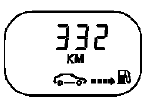 Elle ne s'effectue qu'après avoir parcouru 400 mètres environ. Au-dessous, des tirets fixes apparaissent sur l'afficheur. Il s'agit de l'autonomie potentielle obtenue en tenant compte de la distance parcourue, de la quantité de carburant restant dans le réservoir et du carburant consommé.