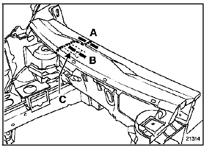 Attention : la coupe est située au niveau du renfort support d'essuie-vitre (c) indiqué en pointillé sur le dessin.
